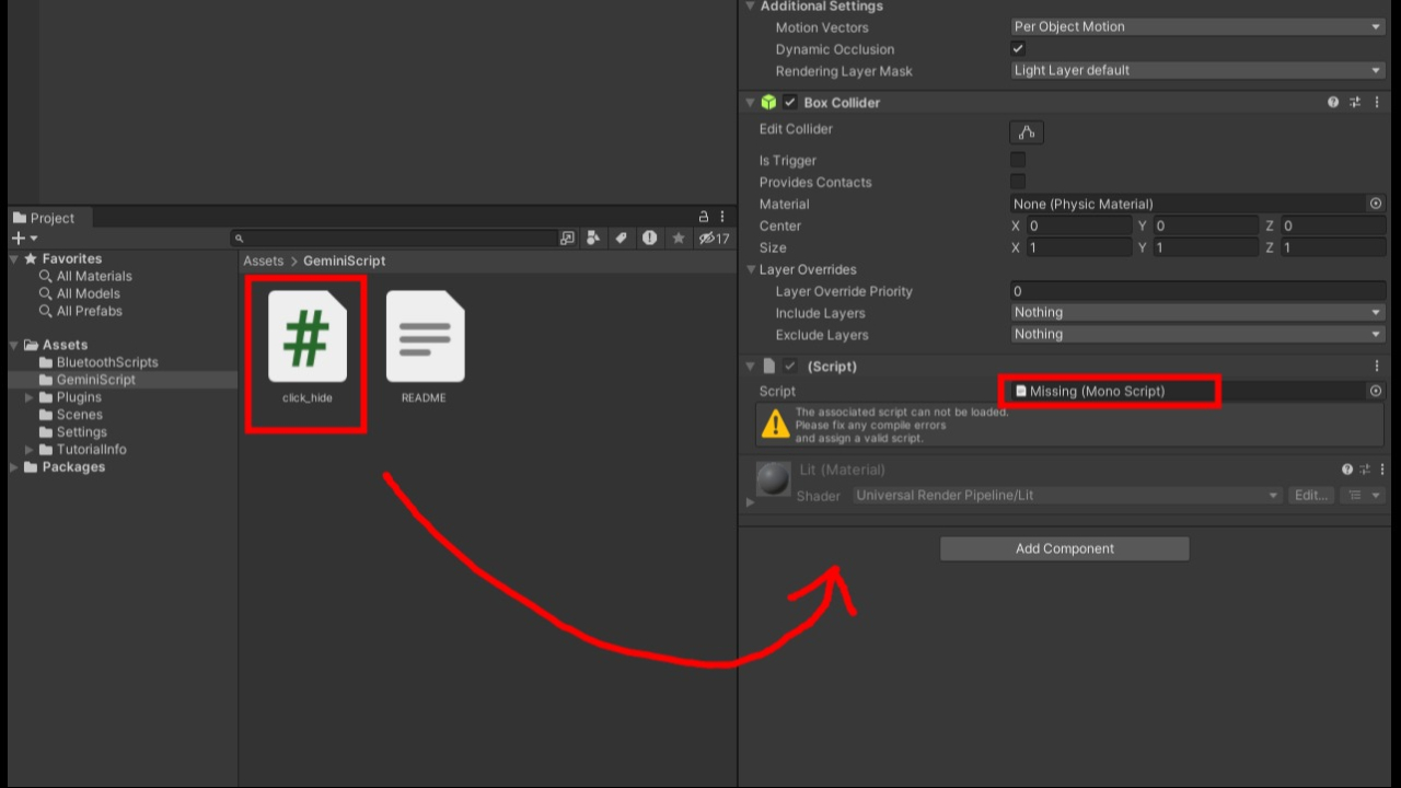 hide.cs 파일의 이름을 click_hide.cs로 바꾸고. 게임시작되면 사라지는 기능 삭제, 마우스로 클릭하면 사라지게 해줘