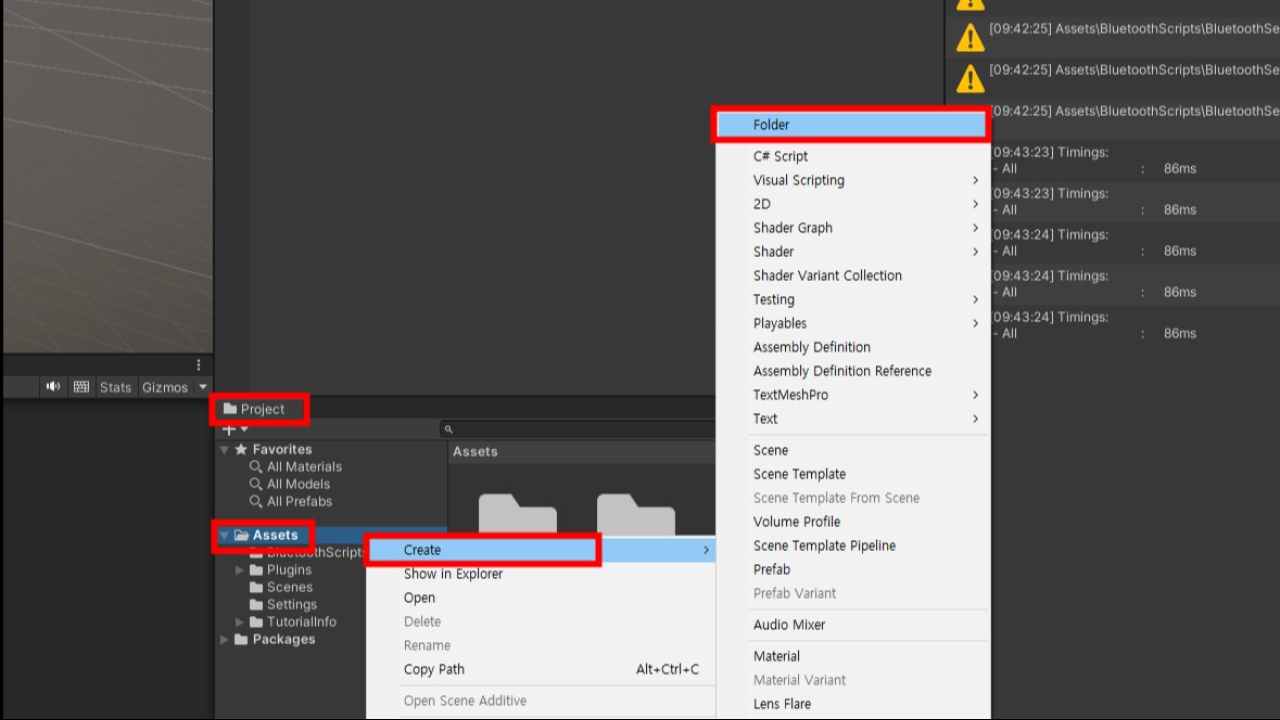 - project창 > Assets 마우스 우클릭 > Create > Folder