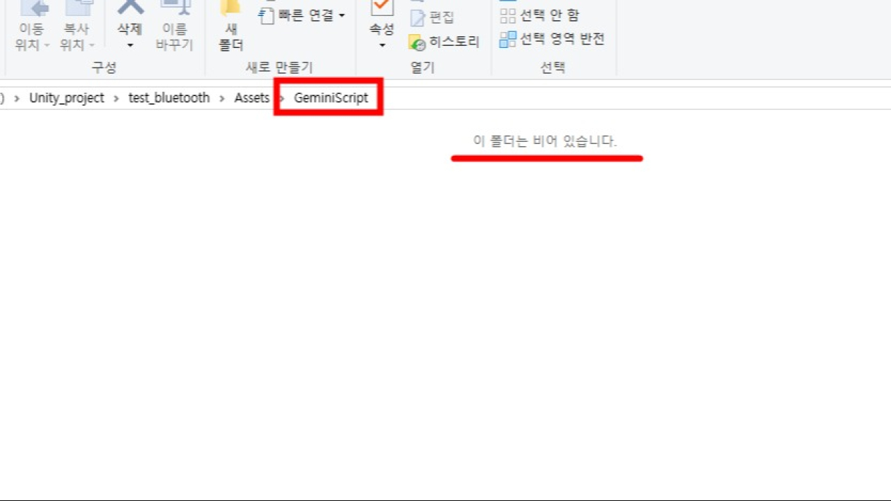 - project창 > GeminiScript 마우스 우클릭 > Show in Exploerer 선택하여 폴더위치 열기