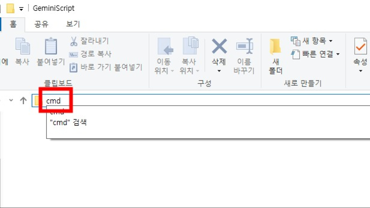 - 폴더명은 “GeminiScript”로 작성 (자유롭게 작성해도 되나, 혼란을 방지하기 위함)